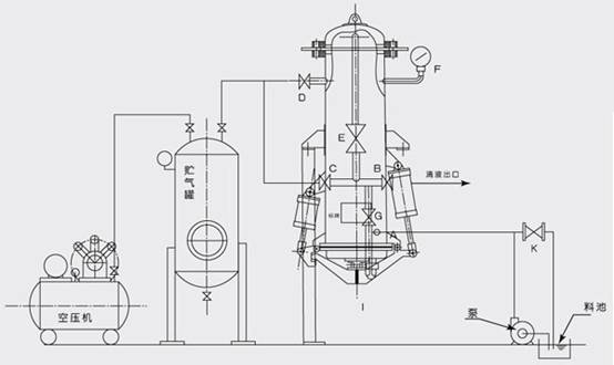 6、特殊设计实现了大口径的气动排渣底盖的快速闭启